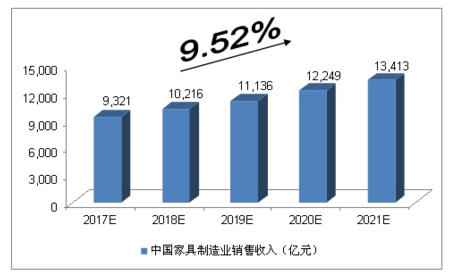 2017-2021年中國家具制造業銷售收入預測