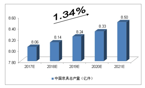 2017-2021年中國家具總產量預測