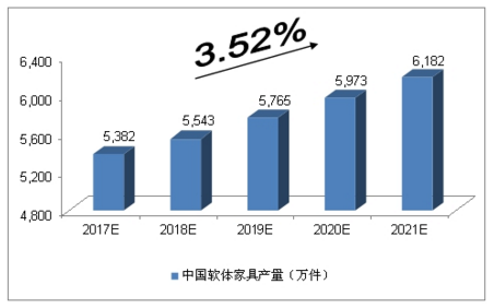 2017-2021年中國軟體家具產量預測
